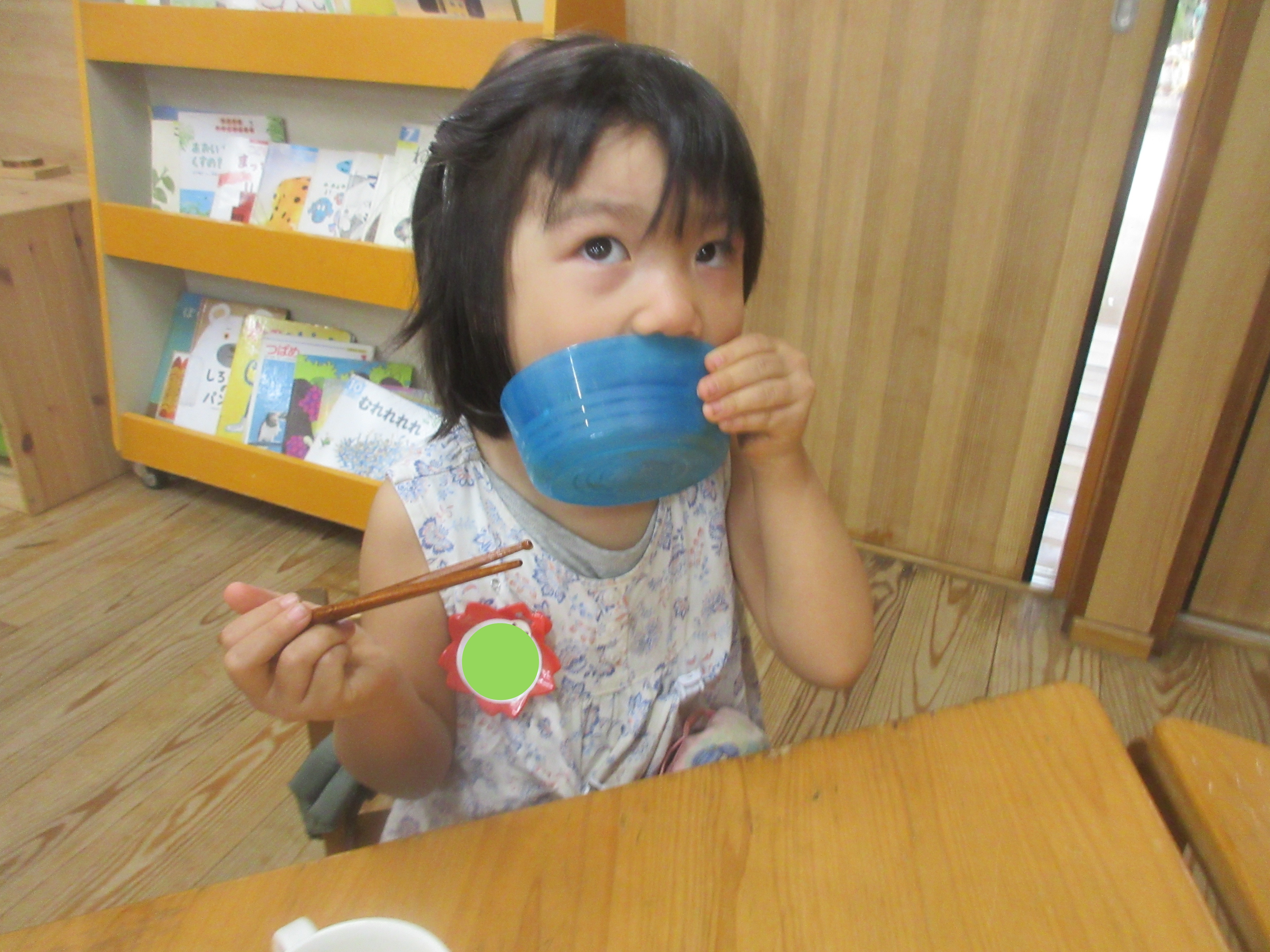 年長さんが、みんなのために丸めたお団子を運んできてくれました。