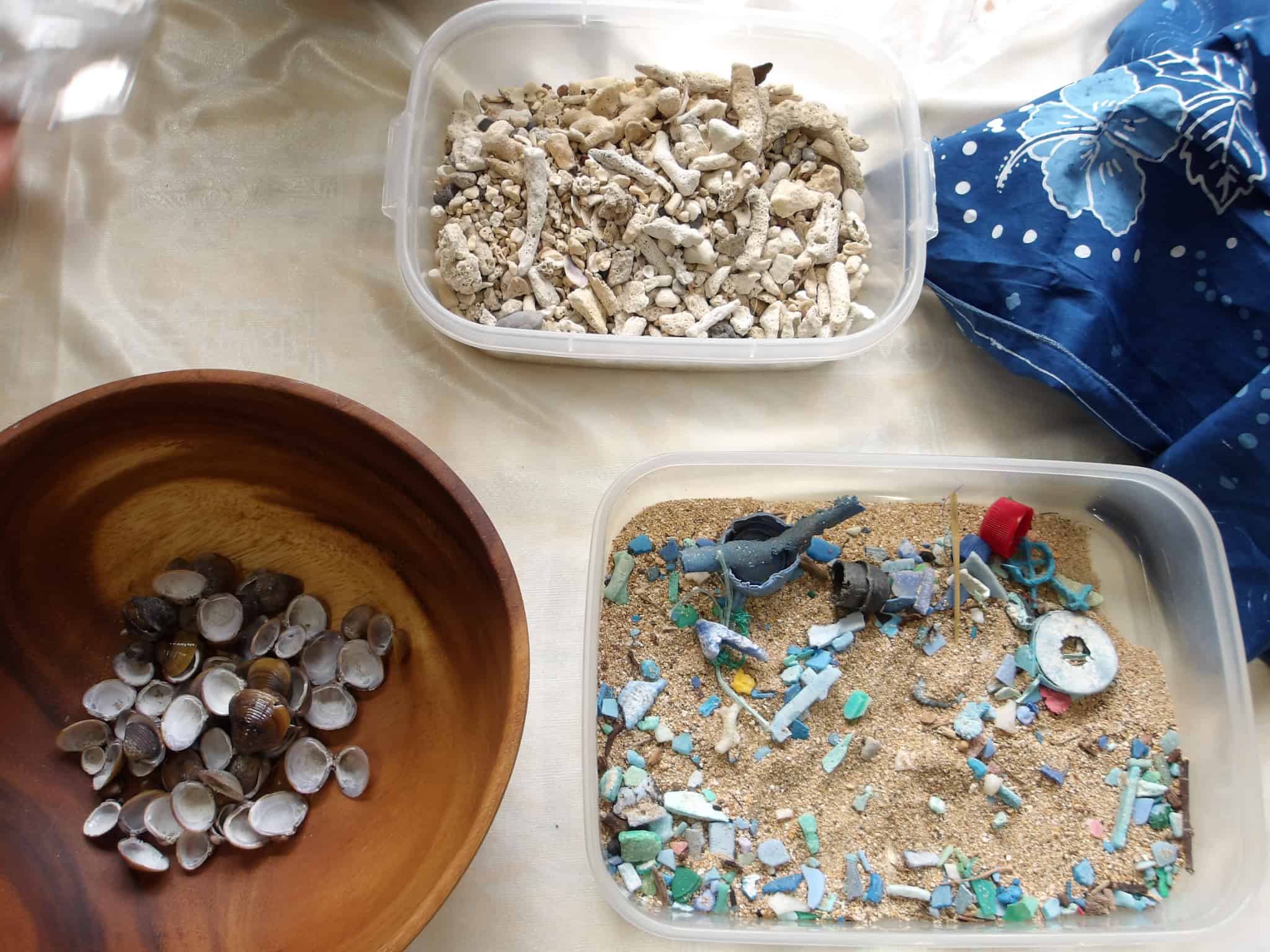 サンゴ、メキシコの貝、マイクロプラスチックを頂き、