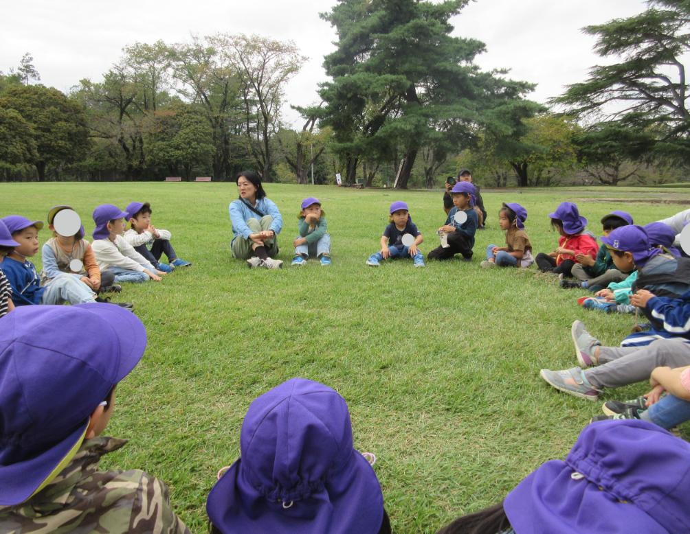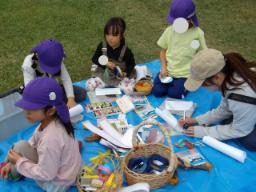 お弁当を食べた後は広々した場所でリレーや製作、歌のコンサート、転がしコーナー、鬼ごっこ、虫探しなど
