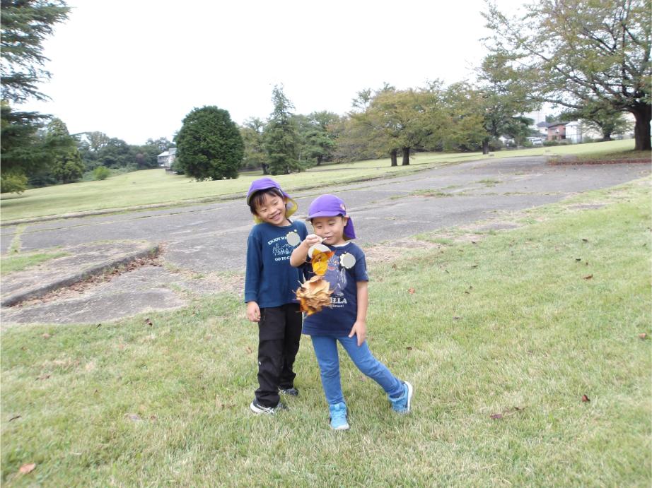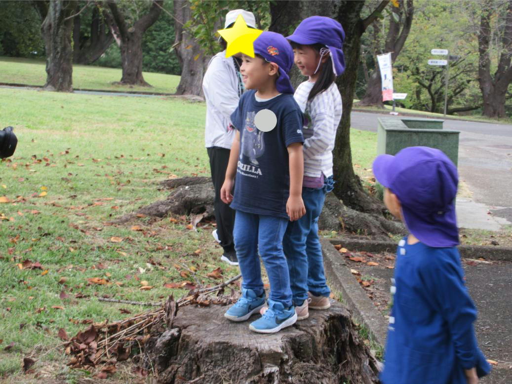 翌日、幼稚園でいちょうの木に集めたパワーを見せたり、チームごとに集めたものの共有もしました。