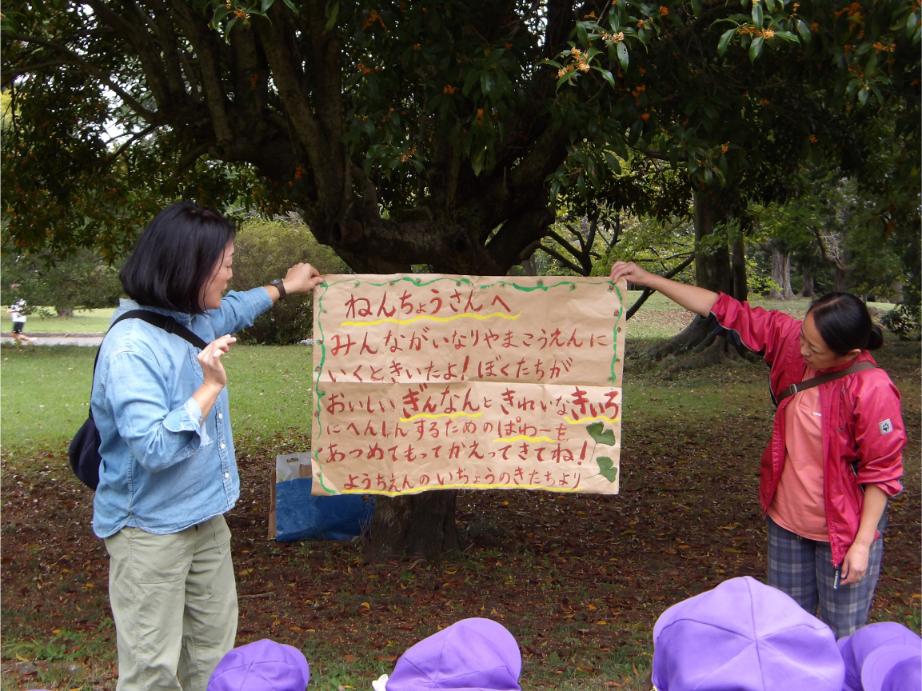 稲荷山公園に着くと、幼稚園にあるいちょうの木たちからの手紙が…!