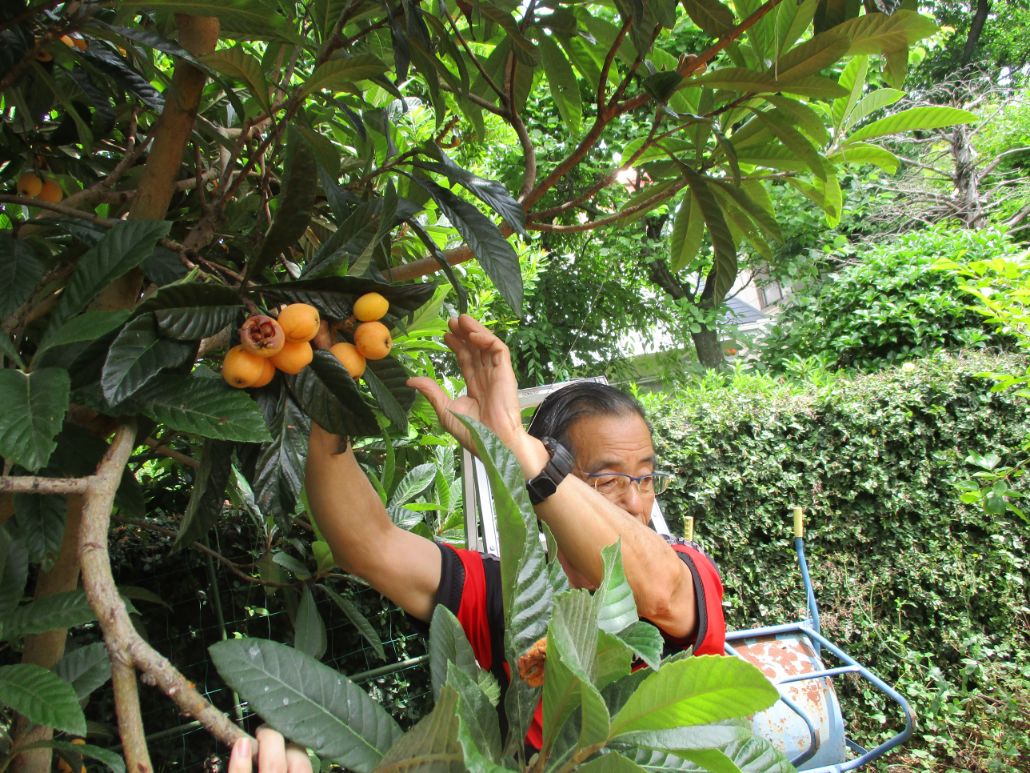 園長先生が「びわ、取りにおいで」と言って下さったので、クラス毎にびわ狩りをしてきました。