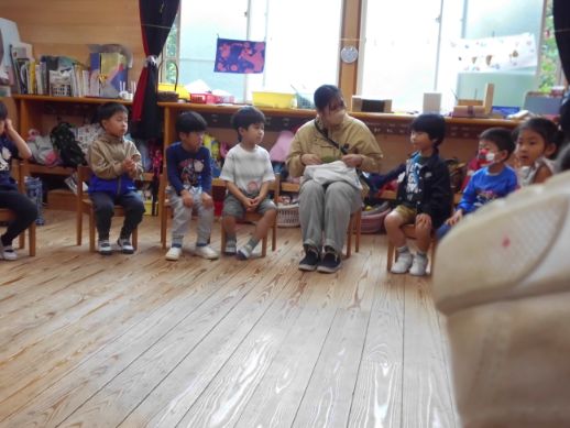 帰りの集まりでは、そのお手紙を森のポストに投函し、さっちん郵便屋さんが回収していきました。