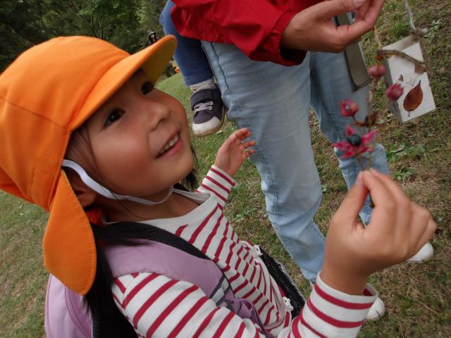 きれいな色の実、ころころどんぐり、可愛い形の葉っぱ、キンモクセイの香りなど、本当に様々なお宝が見つかりました。
