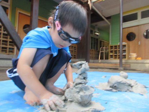 形が自由自在に変化する土粘土で、心も体ものびのびと解放された一日となりました。
