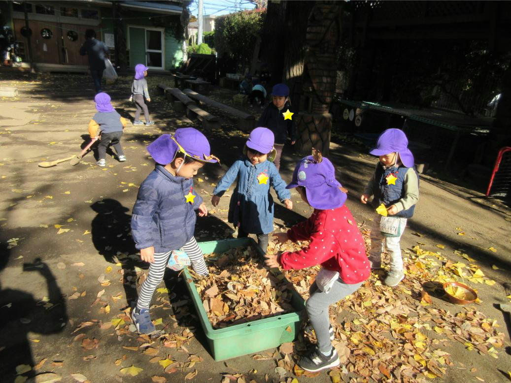 次の日には幼稚園の園庭でも落ち葉遊びを楽しみました!