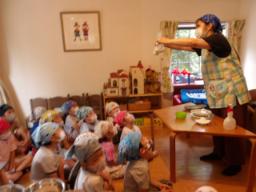幼稚園のみんなが食べるお団子を作る、という初めてを