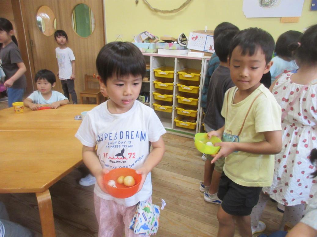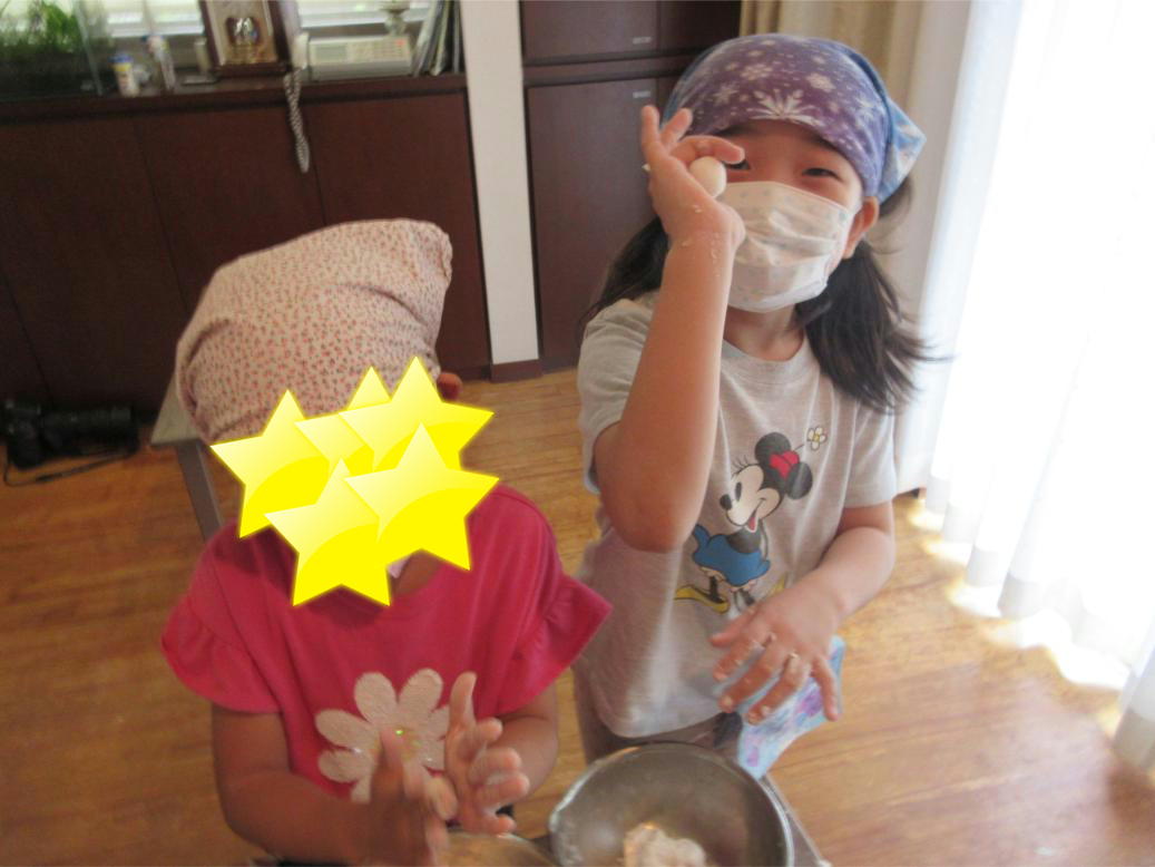 みんなの力を合わせて幼稚園のみんなが食べるお団子の完成です!