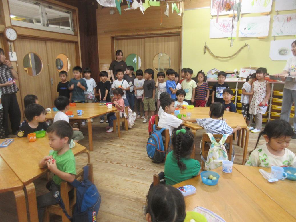 きく組がもも組/ちゅうりっぷ組に、ゆり組がさくら組に配膳を