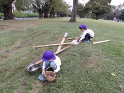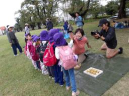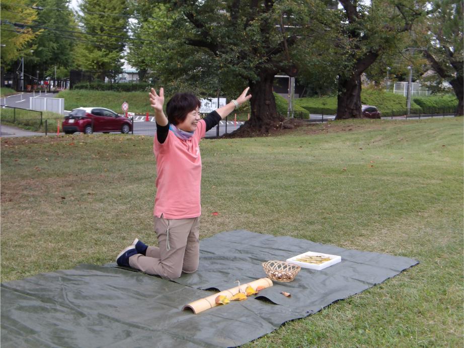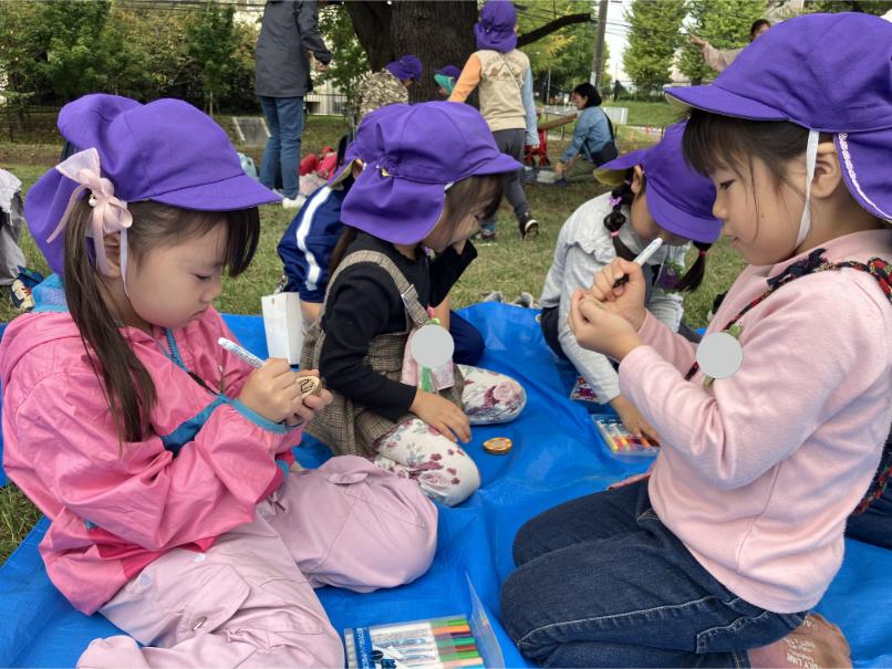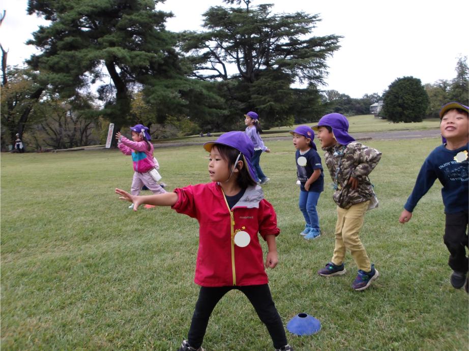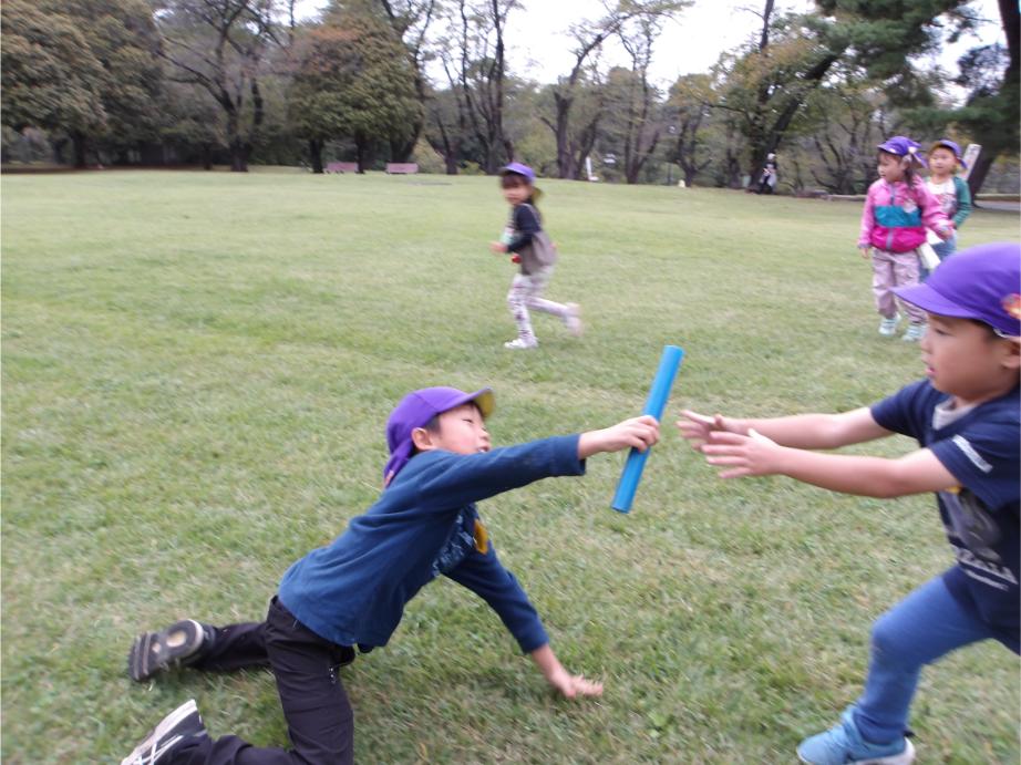 お弁当を食べた後は広々した場所でリレーや製作、歌のコンサート、転がしコーナー、鬼ごっこ、虫探しなど
